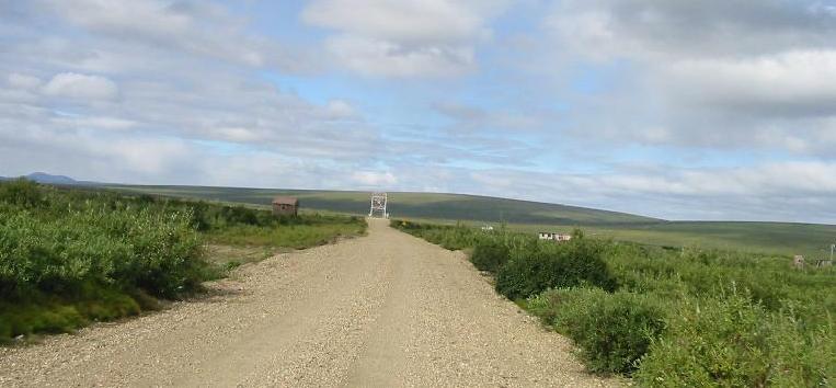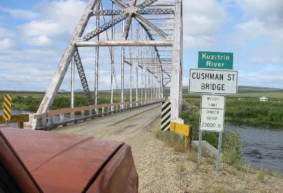 ![]() ©2003 Scott Webber: 164 Coming up on the Kuzitrin River Bridge, milepost 68 on the Nome-Taylor highway. This bridge was originally in downtown Fairbanks, Alaska and was brought here by the Alaska Department of Highways in the early 60's. |
